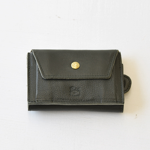 イルビゾンテのロゴをフロントとボタン部分に型押しした、さりげなくスタイリッシュなデザイン。