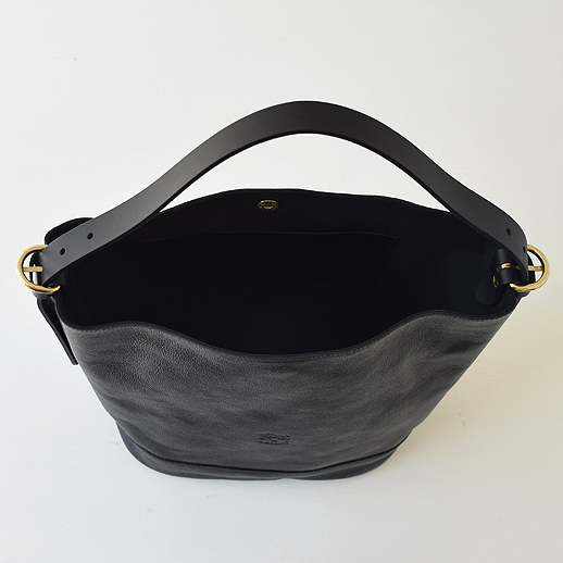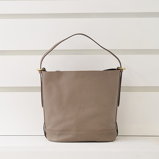 イルビゾンテの新作ショルダーバッグです。タテ型で大容量。底マチも楕円形でしっかりとしているので、